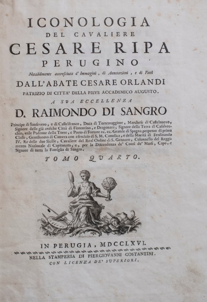 Plus d’un livre lui fut dédié. L’Iride e l’Aurora boreale, deux poèmes scientifiques en latin du jésuite Carlo Noceti, avec une traduction italienne en regard. Cette édition, imprimée dans l’Imprimerie Impériale de Florence, s’ouvrait avec une longue dédicace à Raimondo di Sangro par l’érudit toscan Anton Francesco Gori. En outre, en 1764-67, le prince de Sansevero finança une édition monumentale en cinq volumes, sortie à Pérouse, de l’Iconologie de Cesare Ripa, traité iconographique fondamental publié pour la première fois à la fin du XVIe siècle.